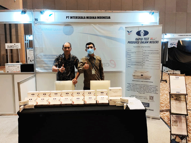 PT Interskala Medika Indonesia menjadi salah satu perusahaan manufaktur alkes yang mengikuti event ini. Kami memproduksi produk Rapid Test untuk berbagai kebutuhan seperti Antigen Test Kit, hcg Pregnancy, HBsAg, Anti-Syphilis, Dengue IgM IgG, Dengue NS1, Drug Test, Anti HCV dan Anti HIV 1+2. Menjadi kesempatan bagi Kami dalam mempromosikan produk unggulan.